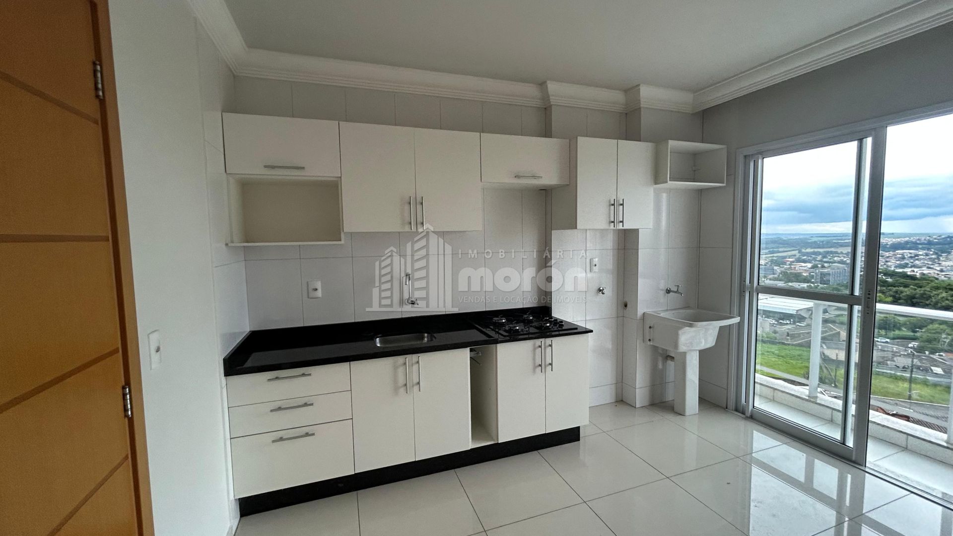 - Cozinha com armários, pia granito e fogão cooktop 4 bocas