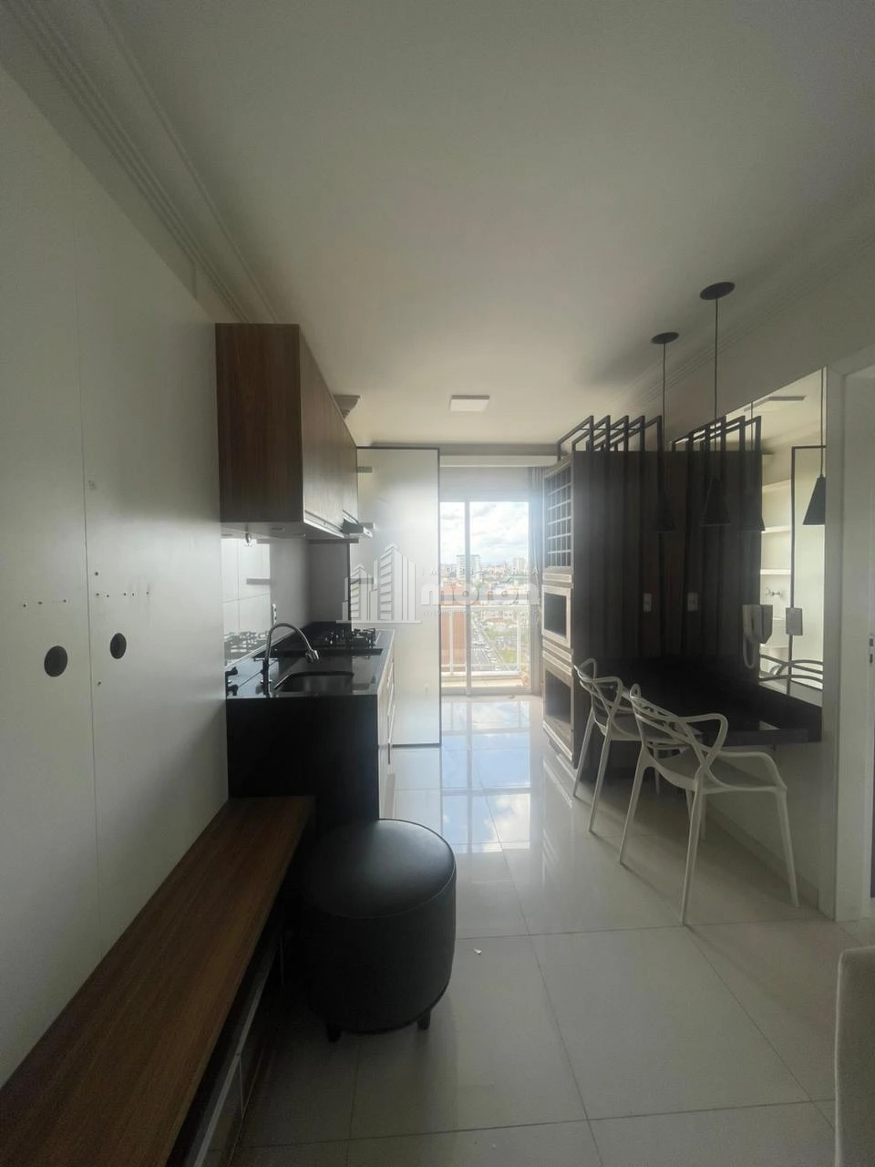 - Sala, cozinha e lavanderia integrados.